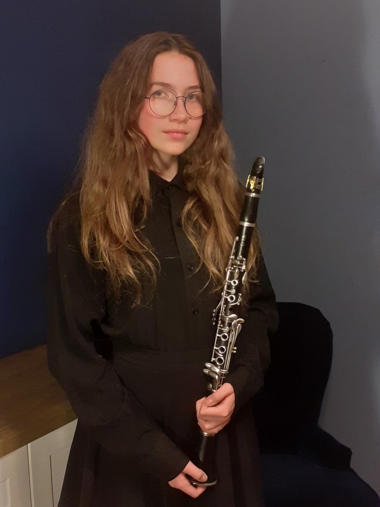 Dobrochna Dąbek born in 2007 in Poznań. She began learning to play the clarinet at the age of 8 at the 1st degree Henryk Wieniawski Music School in Poznań in the clarinet class of Borys Kaźmierczak. She is currently studying at the 2nd degree Mieczysław Karłowicz Music School in Poznań in the clarinet class of Borys Kaźmierczak.